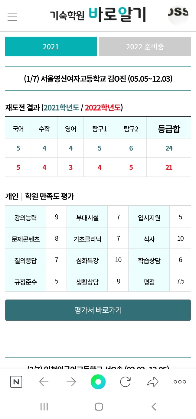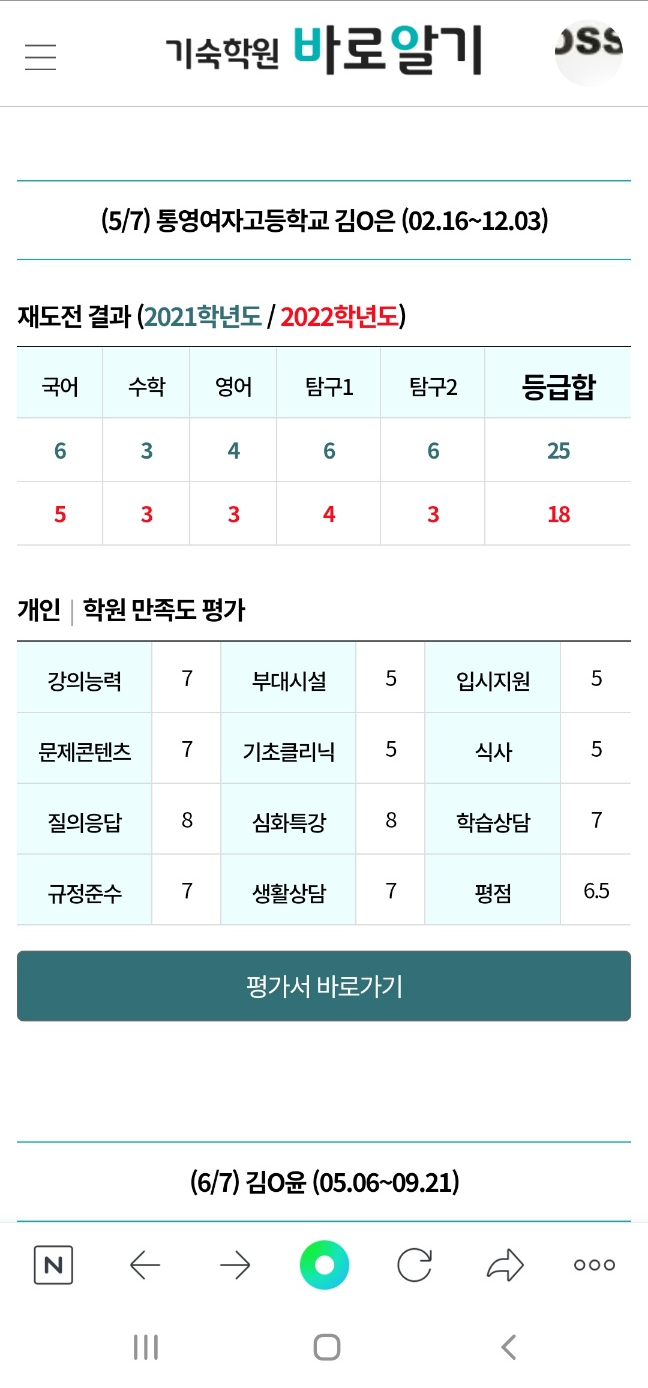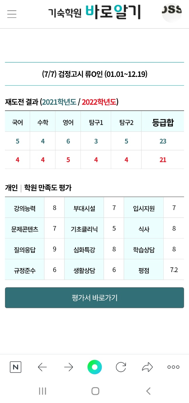 그리고 7건 정도면 학원 규모 대비 평가서가 많이 접수된 편입니다.