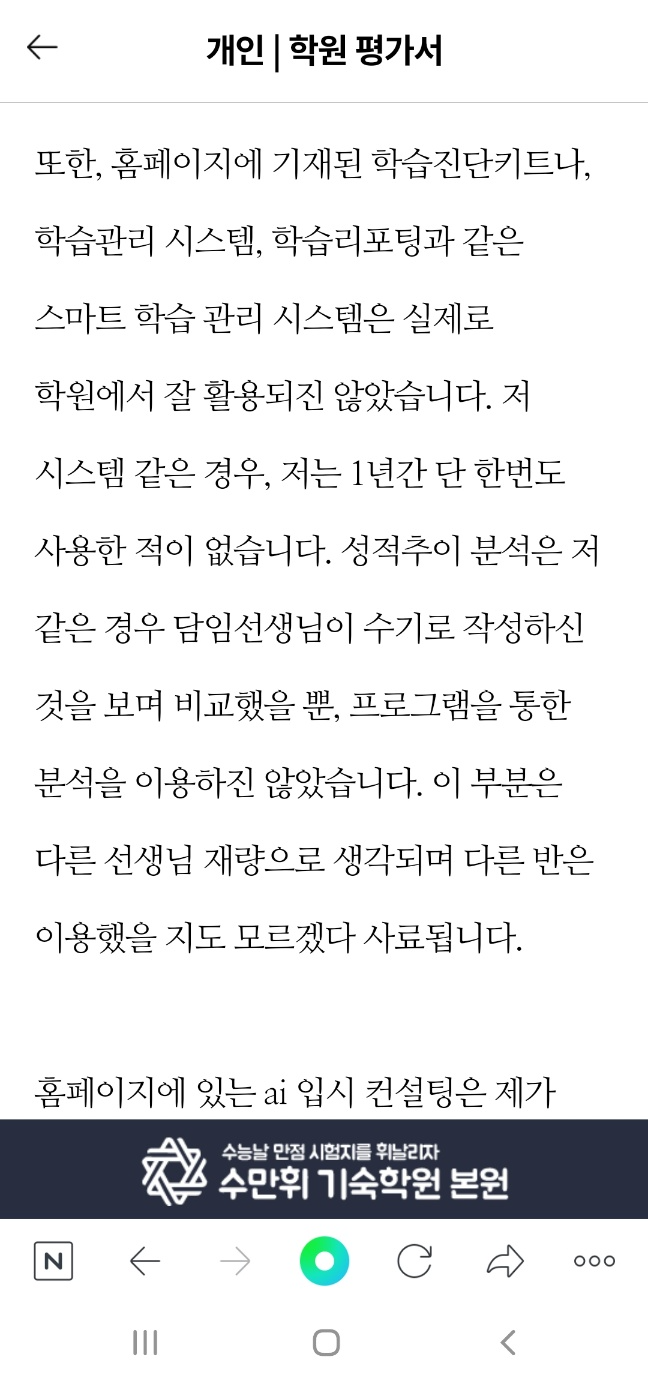 기숙학원바로알기 홈페이지에서 수만휘기숙학원 평가서 꼭 한 번 보세요.