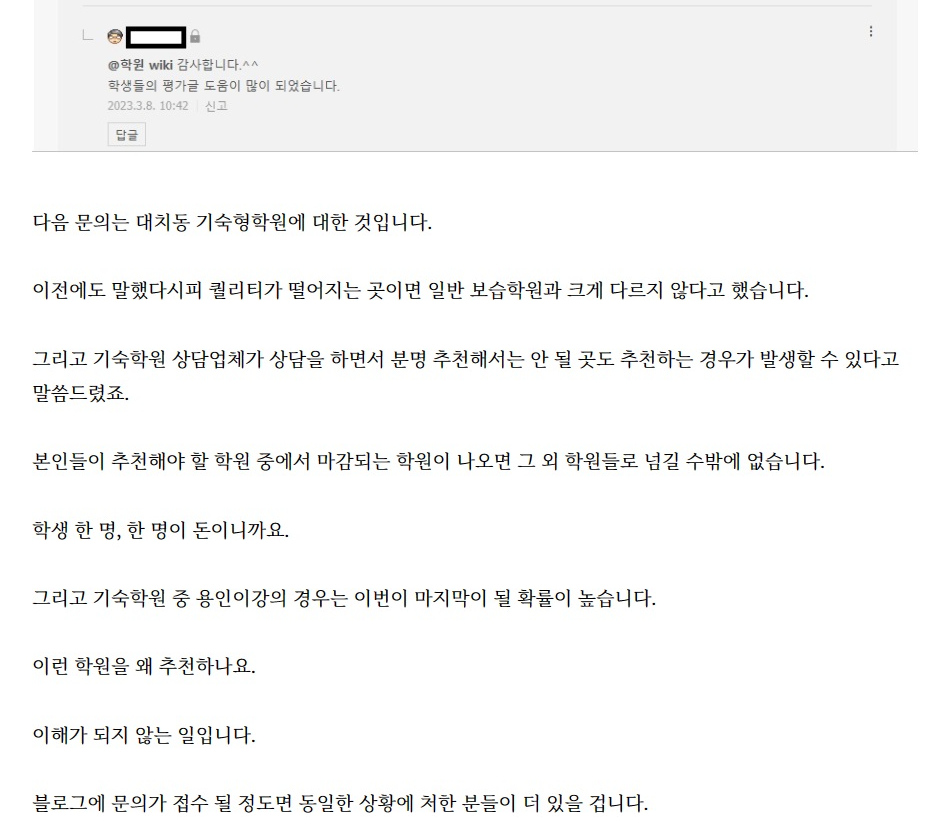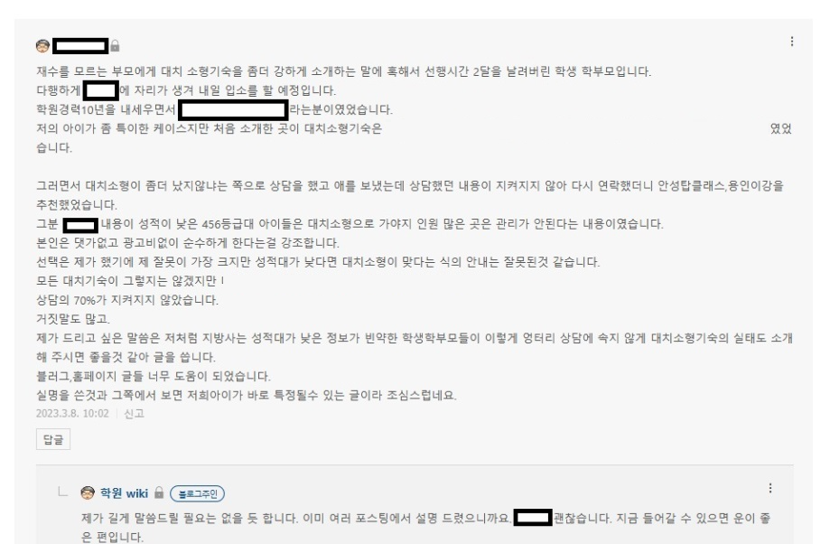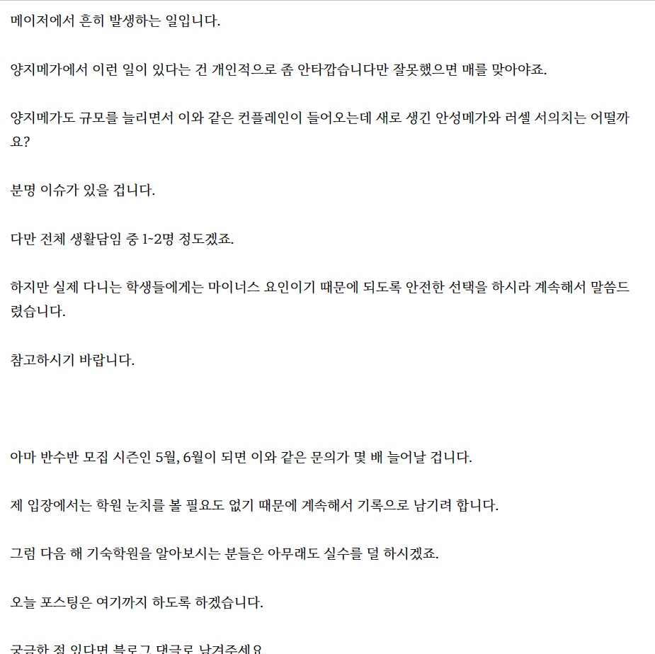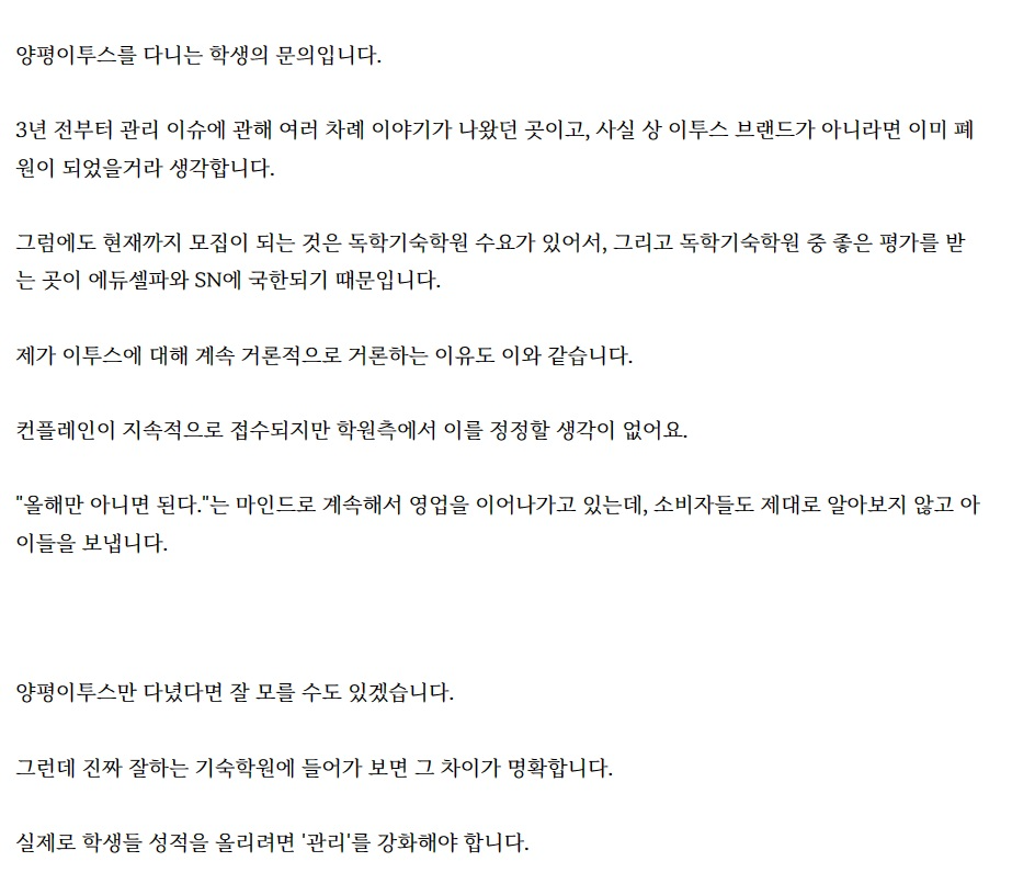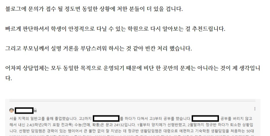 그래도 이왕이면 진짜 성적 올릴 수 있는 곳을 추천하고 싶고, 되도록 무결점이면 좋으니까 험담도 하고 하는 건데 이런 케이스가 발생하는 건 개인적으로 안타깝습니다.