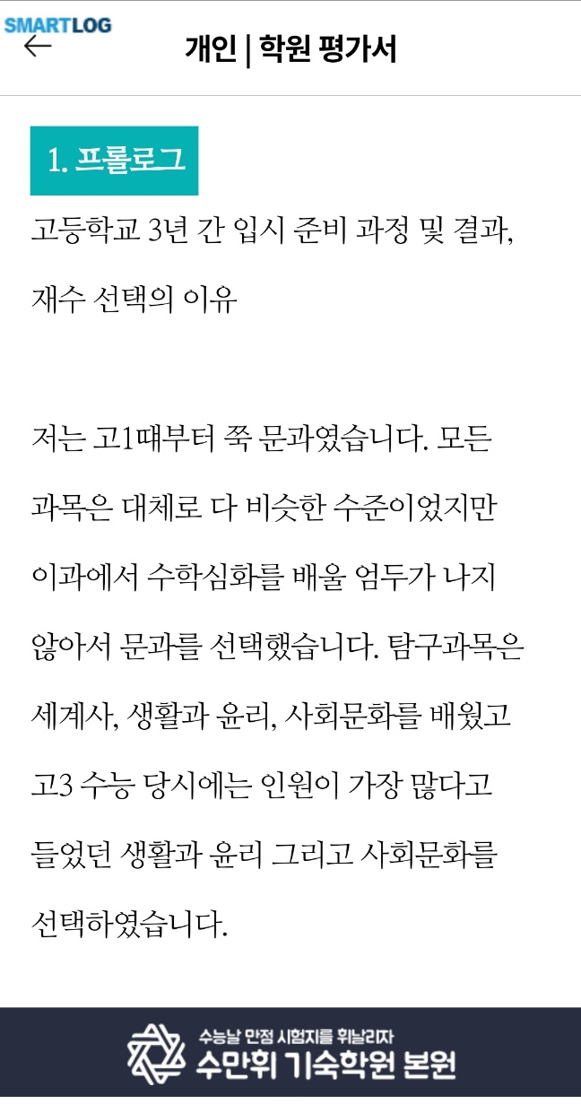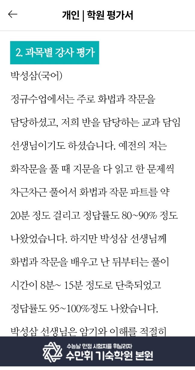 | 서초메가스터디기숙학원 : 광명북고 황O원 학생 평가서 분석 (0) | 2023.01.30 |