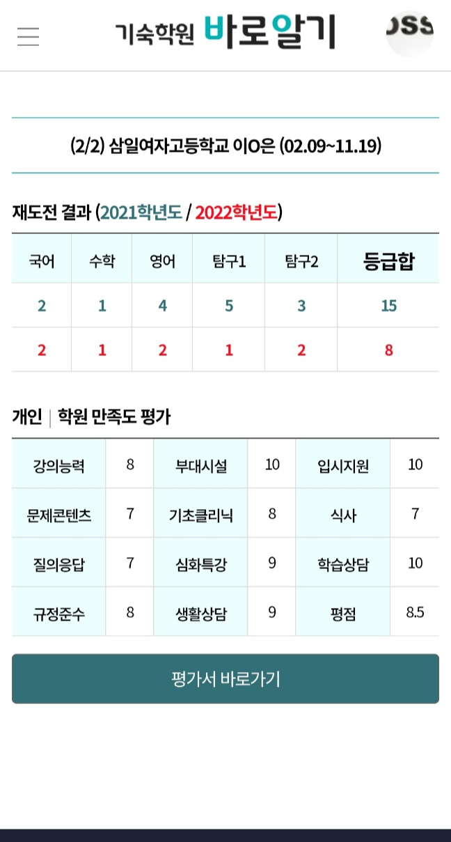 | 서초메가스터디기숙학원 : 광명북고 황O원 학생 평가서 분석 (0) | 2023.01.30 |